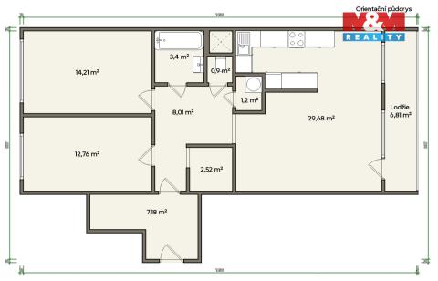 K prodeji, Byt 3+kk, 68 m2 Praha 12, Rilská
