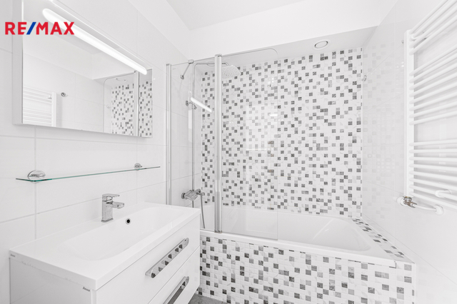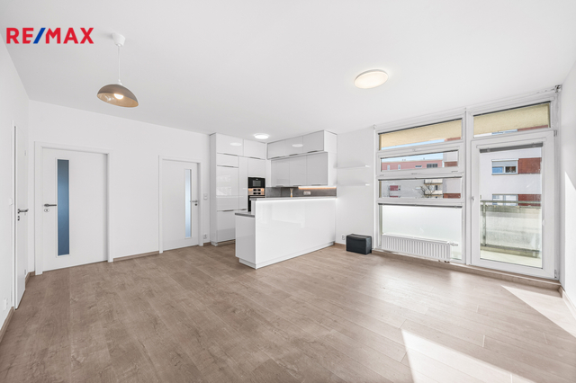 Byt sestává z obývacího pokoje s kuchyňským koutem, dvou ložnic, koupelny, WC, předsíně a komory. Balkon se západní orientací přístupný z obývacího pokoje disponuje krásným výhledem. Nová kuchyňská linka na míru je vybavena těmito vestavnými spotřebiči zn. Bosh: lednice s mrazákem, horkovzdušná trouba, indukční deska, myčka nádobí, mikrovlnka. Digestoř od IKEA je vyvedená do vzduchotechniky. V koupelně se nachází vana, žebříkové topení, prostor pro pračku či sušičku, skříňky, umyvadlo a zrcadlo.
