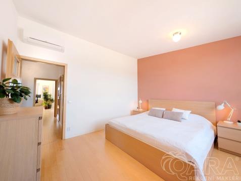 Nabízíme k prodeji světlý, vzdušný a útulný byt o dispozici 3+kk s celkovou plochou 101 m² (podlahová plocha 97,57 m²), situovaný v 10. podlaží z 10, což zajišťuje maximální soukromí a nádherné výhledy do okolí í díky lodžii. Dominantou bytu je prostorný obývací pokoj s kuchyňským koutem o velkorysé výměře 43 m². Díky vysokým stropům působí prostor velmi otevřeně a vzdušně. Kuchyň je plně vybavena k dispozici je myčka, trouba, sklokeramická deska, digestoř s odtahem a praktická špajz pro pohodlné skladování potravin. Byt nabízí dva samostatné pokoje, oba s vestavěnými skříněmi. Další úložné prostory poskytuje samostatná šatna přístupná z chodby a vestavěné skříňky na chodbě. Celkově byt disponuje nadstandardním množstvím úložného prostoru. Koupelna prošla v loňském roce rekonstrukcí a je vybavena sprchovým koutem, umyvadlem, pračkou a topným žebříkem. Samostatné WC je oddělené a vybavené topnou rohoží pro vyšší komfort. Velkým benefitem bytu je balkon s krásnými výhledy z nejvyššího patra. Komfort bydlení zvyšují také tři klimatizační jednotky s možností chlazení i vytápění, ovládané přes mobilní aplikaci. Vytápění je řešeno dálkově. Tento byt je ideální volbou pro ty, kteří hledají moderní, prostorné a komfortní bydlení s dostatkem úložného prostoru a krásnými výhledy. V místě a okolí je veškerá občanská vybavenost (škola, školka, lékaři, obchody, dětské hřiště, OC Černý Most, IKEA, HORNBACH apod.). Před domem je možnost parkování na velkém parkovišti ZDARMA. V dostupné vzdálenosti cca 1 minutu od domu je stanice metra and #34;Rajská zahrada and #34;, dále BUS, VLAK. Velkým plusem je rychlý nájezd na D10, D11 a Pražský okruh. Prodávající si vyhrazuje právo vybrat kupujícího na základě jím zvolených kritérií.