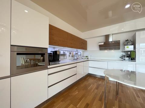 Nabízíme luxusní bydlení v pražských Vinohradech. Jedná se o moderně zrealizovaný byt 3+kk v osobním vlastnictví o výměře 105 m2 + 18 m2 balkóny. Dominantou bytu je moderně navržený obývací prostor spojený s kuchyní od společnosti Sýkora v provedení Crystal White, která je vybavena kvalitními spotřebiči. Byt disponuje dvěmi samostatnými ložnicemi pro dostatek soukromí, a také obývacím pokojem pro společný rodinný život. Ze všech pokojů je možný vstup na prostorné balkóny. V bytě je mnoho úložných prostor, a to nejen díky vestavěným skříním, ale i díky neobvykle velké komoře. Stejně tak koupelna je nadstandardní velikosti se dvěmi umyvadly, vanou a sprchovým koutem. K bytu dále patří podzemní parkovací stání. Non-stop recepce a ostraha je v areálu samozřejmostí. Zaujala Vás tato nabídka? Chtěli byste se dozvědět více? Neváhejte nás kontaktovat na uvedené telefonním čísle v pracovní dny mezi 8.00 a 17.00, nebo prostřednictvím emailu. Těšíme se na prohlídku.