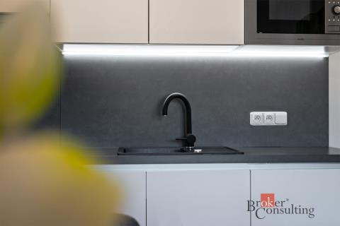Byt je moderně a velmi vkusně řešen a prodává se částečně vybavený.