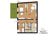 Při koupi této jednotky hradíte pouze první splátku za družstevní podíl - 2.920.000,- Kč. Zbylá anuita (75 % ve výši 7.770.000,- Kč je splácena družstvu měsíční splátkou ve výši 37.467,- Kč, splátky jsou vypočítány na 40 let s 5% úrokem, tuto dobu lze zkrátit). Ateliér lze pronajmout, tržní nájemné činí cca 18.000,- Kč za měsíc. V případě koupě družstevního podílu není nutné projít skóringem jako u banky. Celková cena nemovitostí činí 10.690.000,- Kč.