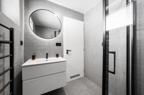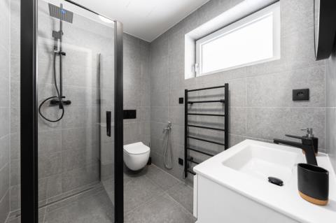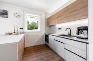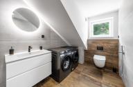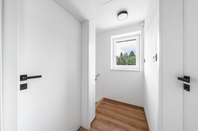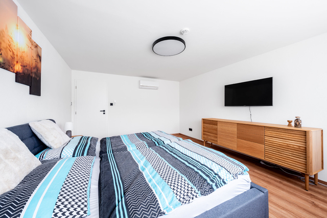 Apartmán je dokončen v nadstandardním provedení, které zahrnuje kvalitní plastohliníková okna a posuvné dveře typu HS portál s izolačním trojsklem, venkovní žaluzie, podlahové vytápění, v koupelnách navíc s topnými žebříky, nástěnné klimatizace ve všech obytných místnostech, elektrický zásobníkový ohřívač vody, zabezpečovací zařízení JABLOTRON s aplikací pro dálkové ovládání alarmu i celé domácnosti (ovládání klimatizace, topení či venkovních žaluzií), vnitřní schodiště s masivními dřevěnými nášlapy, interiérové dveře bílé s obložkovými zárubněmi, lepené vinylové podlahy v kombinaci s keramickou dlažbou, obklady či sanitu od renomovaných výrobců.
