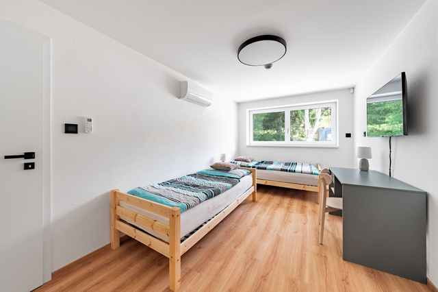 Resort je oplocený, na vjezdu s automatickou bránou, napojený na zpevněnou obecní komunikaci a chráněn kamerovým systém. Na pozemku je také dětské hřiště a ohniště. Otopný systém je doplněn fotovoltaickými panely na střechách obou budov. Takto získanou elektrickou energii mohou společně využívat obyvatelé resortu pro provoz svých domácností.