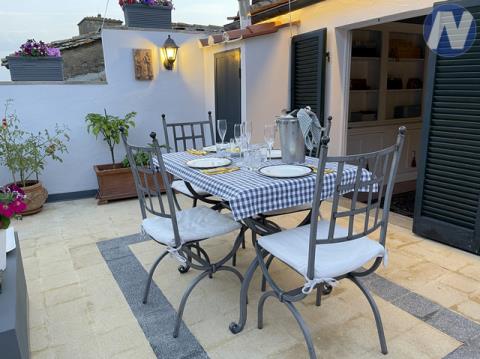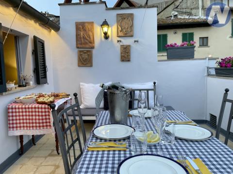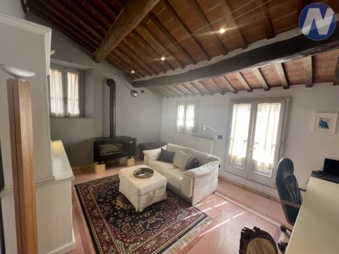 Představte si, že se probouzíte uprostřed města, kde se historie snoubí s uměním a s dechberoucími výhledy na zvlněnou krajinu. Tento okouzlující, dvouúrovňový apartmán o rozloze 130 m² se nachází ve 3.patře historického domu, pouhou minutu chůze od hlavního náměstí. Dům, který si zachoval svůj historický půvab, leží v poklidném ústraní, a přesto na dosah od pulzujícího života jednoho z nejromantičtějších městeček Toskánska.
