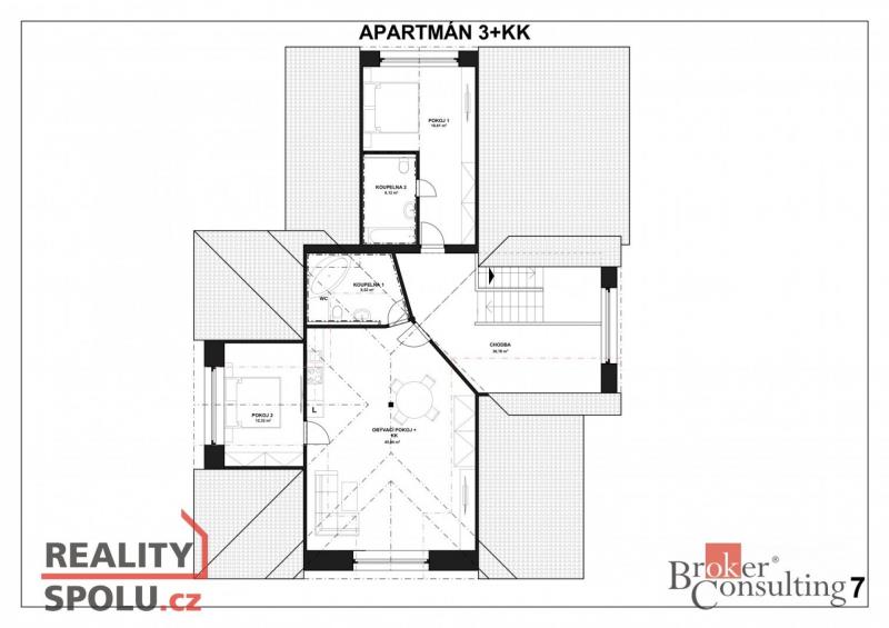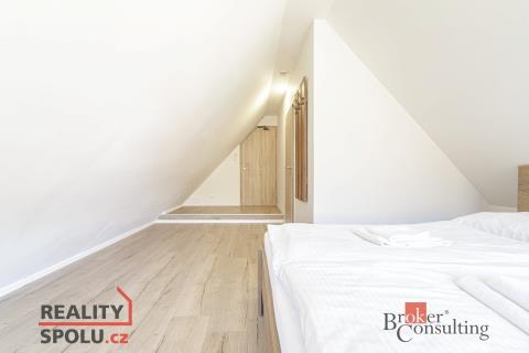 Apartmán je ve skvělém stavu a čeká na svého nového majitele. Apartmánový prostor je možné rozdělit na více pokojů, v současné době disponuje velkým pokojem, 2x sociálním zařízením, chodbou, druhým pokojem, volným prostorem nad schodištěm. V případě zájmu, je možné vybudování kuchyňského koutku, vytápění je přímotopy, je možnost předělání na ústřední vytápění plynovým kotlem případně tepelným čerpadlem.