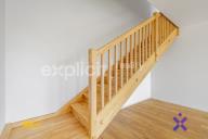 Hlavní obytný prostor tvoří velká otevřená místnost, ideální pro kuchyňský kout s jídelnou a obývací částí. Díky dvěma francouzským oknům je místnost nádherně prosvětlená a působí velmi vzdušně. Tato okna zároveň slouží jako vstup na spodní terasu, která rozšiřuje obytný prostor a nabízí místo k odpočinku. Obě patra spojuje stylové dřevěné schodiště.