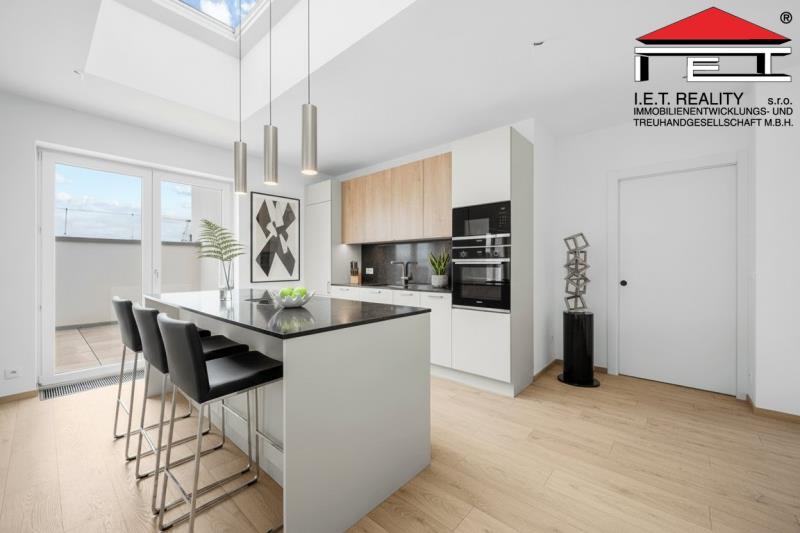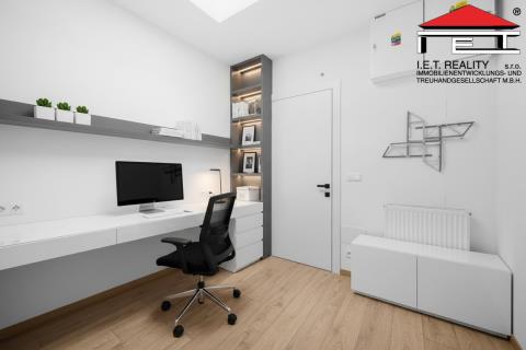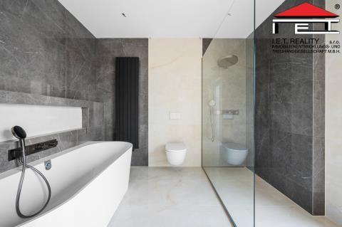 Prodej exkluzivního bytu o dispozici 3+KK a celkové výměře 136 m², včetně terasy. Byt je umístěn ve 3.NP nového rezidenčního projektu Litava s výtahem a vyniká promyšlenou dispozicí. Interiér bytu prošel nadstandardními úpravami včetně dispozičních změn pro větší funkčnost a komfort. K bytu náleží zastřešené parkovací stání ve vnitrobloku bytového domu. Dispozice bytu: Z předsíně je vstup do samostatného pokoje (šatna, pokoj pro hosty, dětský pokoj) a toaletu. Hlavní obytnou část tvoří světlý obývací pokoj s nadčasovou kuchyňskou linkou s vestavnými spotřebiči. Dále z tohoto pokoje je přímý vstup na prostornou terasu, s výhledem do vnitrobloku. Z obývací části je zároveň vstup i do komfortní hlavní ložnice, která disponuje vlastní koupelnou a šatnou. Některé z fotografií jsou pouze ilustrační vizualizace pro lepší představu o možném uspořádání interiéru. Použité materiály a vybavení: Koupelny: podomítkové baterie HansGrohe RainSelect v kartáčovém černém designu, hlavová sprcha, HansGrohe, černý chrom, závěsné WC, vana se zástěnou s napouštěním z přepadu, Villeroy & Boch. Velkoformátová dlažba a obklady, podlahové vytápění. Topení v ložnici a obývacím pokoji pomocí fan Coil jednotek, příprava pro chytrou domácnost pomocí dálkového ovládání, střešní světlík v menším pokoji s dálkovým ovládáním, kuchyňská linka s kamennou deskou Technistone. Slavkov u Brna nabízí kompletní občanskou vybavenost, vynikající dostupnost do Brna cca 20 min a zároveň klidné a příjemné bydlení s dostatkem zeleně.
