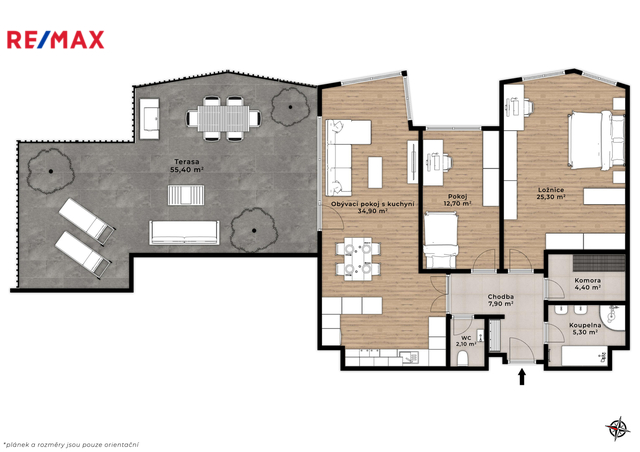 Tento byt o celkové ploše 97,2 m² + terasa 55 m² není jen o metrech čtverečních. Je o prostoru, klidu a komunitě. O místě, kde se dobře žije dnes i za několik let.