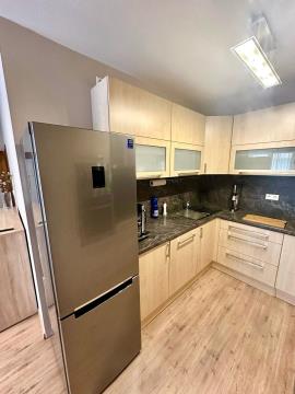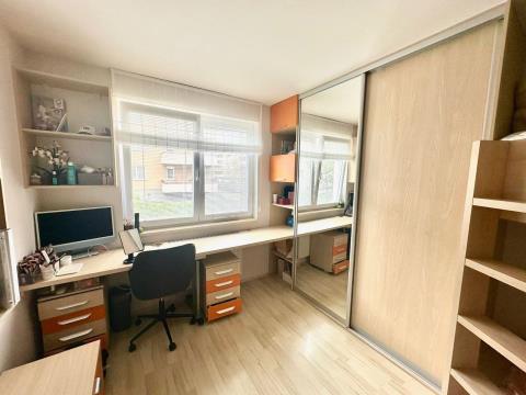 Na podlaze pokojů je položena plovoucí laminátová podlaha, v předsíní, komoře, koupelně a toaletě, je položena keramická dlažba. Bytová jednotka se k prodeji nabízí kompletně vybavená nábytkem na míru ( kromě pračky a sušičky ). V obývacím pokoji je k dispozici nábytková sestava, komoda, zánovní rohová sedačka a zánovní jídelní rozkládací stůl. Kuchyňská linka se nabízí včetně vestavěných spotřebičů značky Fagor a Miele ( indukční varná deska, trouba, myčka, mikrovlnná trouba, digestoř ) a samostatné lednice s mrazákem. V ložnici je k dispozici manželská postel s nočními stolky, vestavěná skříň a pracovní koutek. Dětský pokoji se nabízí s patrovou postelí, vestavěnou skříní, pracovním stolem a policovou sestavou se spodními skříňkami. V předsíni je umístěna vestavěná skříň a věšáková sestava, v koupelně je k dispozici zrcadlo s osvětlením, spodní skřínka s umývadlem a závěsné skřínky. Orientace všech pokojů je na jihozápad. V bytě je zavedena telefonní přípojka s možností instalace kabelové televize a internetu. K bytové jednotce ještě přináleží sklep o ploše 1,9 m2.