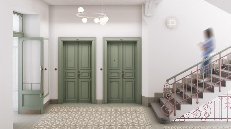 Severně / Jižně orientovaný byt o dispozici 3+kk a podlahové ploše 88,9 m² je součástí nového rezidenčního projektu Bělehradská 29, který vzniká kompletní rekonstrukcí novobarokního činžovního domu z roku 1910. Nachází se na pomezí Vinohrad a Nuslí – v živé čtvrti s kavárnami, službami i zelení, jen minutu od tramvajové zastávky Nuselské schody. Dokončení je plánováno na 3. čtvrtletí roku 2026. Půdorys bytu v 2. podlaží zahrnuje obývací pokoj s přípravou na kuchyni, dvě ložnice, vstupní chodbu, praktickou komoru, koupelnu se sprchovým koutem a samostatnou toaletou. K jednotce náleží také sklepní kóje. Vybavení zahrnuje dubové podlahy, dřevěná špaletová okna s dvojsklem, elegantní interiérové dveře, koupelnu v nadčasovém designu se sanitou značek Laufen a Grohe a decentně řešená otopná tělesa a elektroinstalaci, která neruší celkový výraz interiéru. Byt bude dokončen v provedení fit out – připravený k okamžitému nastěhování. Dům projde kompletní rekonstrukcí. Vzniknou reprezentativní společné prostory, moderní výtah, repasované kamenné schodiště se zdobným zábradlím a nové technické zázemí. Rezidentům bude k dispozici sauna, fitness, kolárna a kočárkárna, ve vnitrobloku pak klidné místo k posezení mezi zelení. Budova stojí v klidném úseku ulice Bělehradská, jen pár kroků od tramvajové zastávky Nuselské schody. V okolí jsou oblíbené podniky jako Solo Bakery, Ô-mai coffee, Las Adelitas nebo pizzerie Da Pietro, v docházkové vzdálenosti také parky Folimanka a Grébovka. Nechybí zde lékárny, školy, fitness centra ani běžné služby. Na metro I. P. Pavlova se dostanete tramvají za čtyři minuty, do centra během deseti.