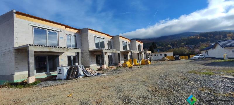 Nabízíme novostavbu bytové jednotky se zahradou v řadovém domě, která je součástí developerského projektu Rezidence Loučná ve městě Loučná nad Desnou, část obce Kociánov. Lokalita je charakteristická svou výjimečnou polohou v blízkosti nejvyššího vrcholu Jeseníků Pradědu a přibližně 10minutovou dojezdovou vzdáleností do lázeňského centra Velkých Losin. Typově se jedná o dvoupodlažní řadový dům s pultovou střechou, moderní architekturou a praktickým dispozičním řešením. Projekt je koncipován jako kompaktní zástavba čtyř řadových domů v jedné uliční linii. Bytová jednotka nabízí komfortní bydlení pro pár nebo rodinu s jedním dítětem, přičemž je kladen důraz na maximální využití prostoru. Dispoziční uspořádání je 3+kk s podlahovou plochou 58 m. Součástí jednotky je vlastní zahrada o výměře 244 m. Ze zádveří je vstup do obytné části, která zahrnuje obývací pokoj s kuchyňským koutem, ložnici, dětský pokoj a koupelnu s WC. Zdroj tepla je umístěn v prostoru koupelny, kde je počítáno také s umístěním pračky, případně sušičky. K bytové jednotce náleží parkovací stání. V rámci první etapy výstavby budou realizovány celkem čtyři řadové domy. Lokalita nabízí kompletní občanskou vybavenost při zachování výhod klidné části obce. Budoucím majitelům se tak nabízí ideální kombinace bydlení a rekreace v bezprostřední blízkosti přírody s dobrou dopravní dostupností směrem na města Šumperk či Bruntál. Projekt umožňuje výběr dalších dispozičních nebo technických konfigurací dle individuálních požadavků. Uvedená prodejní cena je včetně DPH. Detailní informace o projektu, standardech a možnostech úprav vám rádi poskytneme.