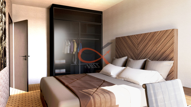 Apartmánová jednotka 233/8 – 3+kk se nachází v 1.NP v rezortu Pohoda na Horní Bečvě. Celková výměra je 58,5m2 a sestává se z pokoje 1- výměra 14,9m2, pokoje 2- výměra 10,9m2, pokoje s kuchyní výměra 21,1m2, koupelny s toaletou 4m2, chodby 7,6m2 . Z jednotlivých pokojů je vstup na venkovní terasu 48m2. Apartmán je orientován na východní stranu. K dispozici je parkovací stání 12,5m2 a zděný sklepní box o velikosti 8,7m2. Rezort se nachází v malebném prostředí Horní Bečvy s výhledem na vodní nádrž a v dostupnosti několika sjezdovek a SKI areálů a cyklostezek. Turisticky atraktivní místo je vedle lomu s vyhlídkou s úchvatnými pohledy do okolní krajiny, odpočinkovými altány jen 8km od Pusteven. Každá bytová jednotka má vlastní ohřev vody, vlastní měřiče energií, podlahové vytápění, vinylové podlahy, koupelna a WC RAKO. Ve společných prostorách je dobíjecí stanice na elektrokola, prostor pro uskladnění lyží a několik společenských místností. Vhodné k trvalému bydlení, k rekreaci i jako investice k pronájmu.