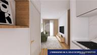 - obývací pokoj s kuchyňským koutem se vyznačuje moderním designem a díky dvěma zrcadlovým vstupům na balkon nabízí přímý přístup do venkovního prostředí