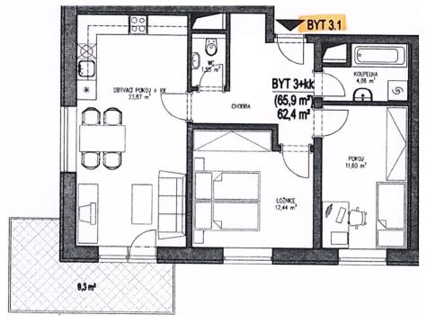 K prodeji, Byt 3+1, 80 m2 Brno, Brechtova
