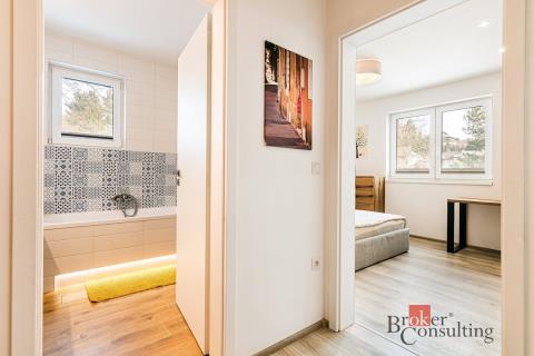Byt 3+kk se zahradou a dvěma parkovacími stáními – Hronov, ul. Husova Nabízíme k prodeji byt o dispozici3+kk a výměře 70 m²sesoukromou zahradou, který se nachází v menším bytovém domě v klidné části města Hronov, ul. Husova. Součástí nemovitosti jsou takédvě parkovací stání přímo u domu a prostorný sklep. Byt tvoří obývací pokoj s kuchyňským koutem a vstupem na zahradu (HS portál), ložnice, dětský pokoj, koupelna a samostatné WC. V celém bytě je instalovánopodlahové vytápění, které zajišťuje příjemný tepelný komfort. Byt je vybaven kuchyňskou linkou a nábytkem na míru, který je součástí prodeje. Zahrada nabízí příjemné soukromí a je vybavenaterasou, venkovním osvětlením, přívodem vody a elektrickými zásuvkami (230 V a 380 V). Praktickou výhodou je taképřímý vstup z parkovacích stání na zahradu přes branku. Byt i sklep je vybavenzabezpečovacím systémem Jablotron a kamerovým systémem, které lze ovládat prostřednictvím mobilní aplikace. Podlahy v obytných místnostech jsou vinylové, v koupelně a na WC je dlažba. Bytový dům má pouze10 bytových jednoteka je vytápěnspolečnou plynovou kotelnou. Výborná občanská vybavenost v pěší dostupnosti – mateřská škola (150 m), základní škola (500 m), dětská hřiště (300 - 1000 m), obchod s potravinami Konzum a drogerie Teta (500 m), Penny Market (600 m), vlakové nádraží (500 m), zdravotní středisko (100 m), zimní stadion (150 m), tělocvična Sokol (250 m), cyklostezky v okolí. Hronov je také dobrým výchozím bodem do turisticky významných lokalit jako Adršpašsko-teplické skály, Orlické hory a Krkonoše. Měsíční náklady: služby cca5 000 Kč, elektřina cca1 500 Kč.