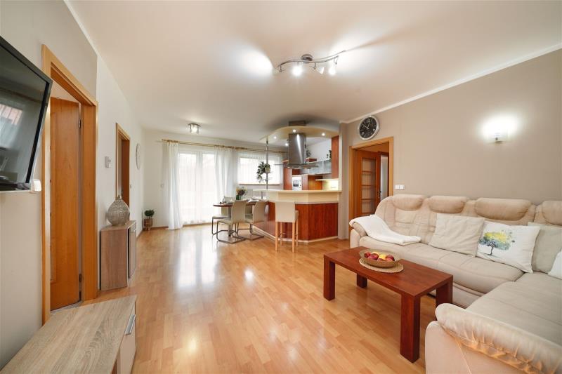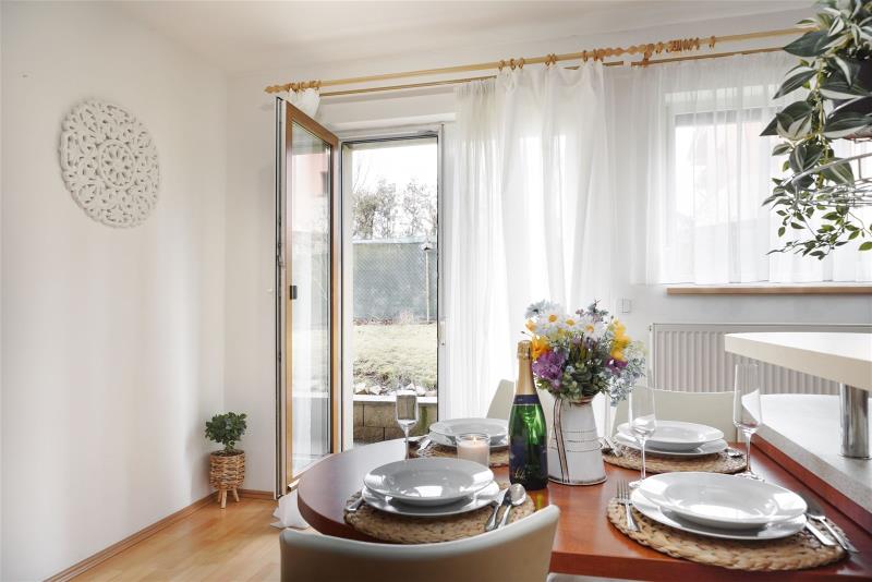 V exkluzivním zastoupení majitelů vám nabízíme velmi příjemný a světlý byt 3+kk o celkové ploše 71,3 m², který se nachází v přízemí menšího bytového domu v klidné a vyhledávané lokalitě. Součástí bytu je vlastní terasa se vstupem na udržovanou společnou zahradu s bazénem, sklepní kóje a garážové stání v rámci společné garáže. Dispozice bytu je řešena maximálně prakticky a ocení ji jak rodina, tak pár, který hledá komfortní a útulné bydlení. Hlavním prostorem je světlo zaplavený obývací pokoj s jídelnou a kuchyňským koutem, ze kterého vstoupíte přímo na terasu orientovanou do zahrady. Dále zde najdete dvě neprůchozí ložnice, velmi prostornou koupelnu s vanou i sprchovým koutem, samostatné WC a velkou předsíň s vestavěnými skříněmi. Byt působí čistě, útulně a nabízí dostatek úložných i obytných prostor. Terasa navazující na zahradu poskytuje příjemné soukromí a skvělé místo pro posezení, relax, hraní dětí nebo letní grilování. Obyvatelé domu mohou využívat i venkovní bazén situovaný přímo na zahradě. Hlavní výhody bytu vlastní terasa se vstupem na klidnou zahradu bazén pro obyvatele domu garážové stání ve společné garáži sklepní kóje velkorysá koupelna – vana + sprchový kout dvě neprůchozí ložnice prostorná vstupní chodba s úložným prostorem příjemná a bezpečná lokalita vhodná pro rodiny Lokalita Okolí domu je velmi klidné a nabízí příjemné rodinné bydlení se spoustou zeleně a soukromí. V blízkosti je veškerá potřebná občanská vybavenost, skvělé možnosti pro procházky, cyklistiku a volnočasové aktivity. Lokalita spojuje klid a pohodlí s výbornou dostupností. Ráda vás tímto bytem osobně provedu a poskytnu veškeré informace. Neváhejte mě kontaktovat – těším se na setkání.