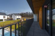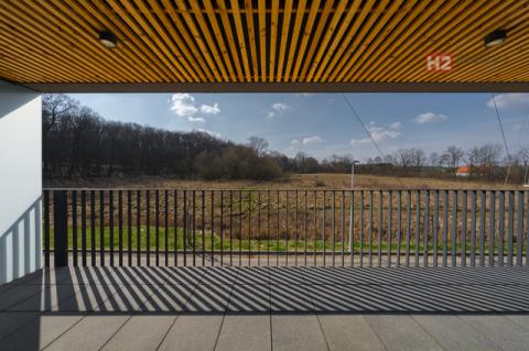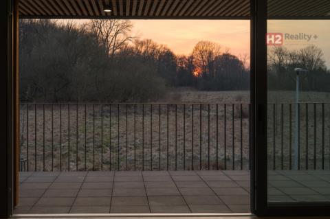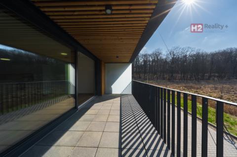 Byt je umístěn ve 2NP dvoupodlažní zděné Budovy energetické třídy A o dispozici 3+kk o celkové ploše 72m2 bez teras a sklepa. Netradičně pro 2 jednotky, vždy jeden společný vchod. Orientace ložnice na severovýchod, obývací pokoj a kuchyň na jih, jihozápad. Na obě strany budovy situovány kryté terasy o celkové ploše 20,6m2, u obývací pokoje přes celou šíři bytu prosklený HS portál na terasu o ploše 13,6m2 s výhledem do přírody a Ctěnického háje. Opravdové soukromí. Bytový dům celkem 16 bytových jednotek.