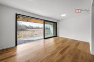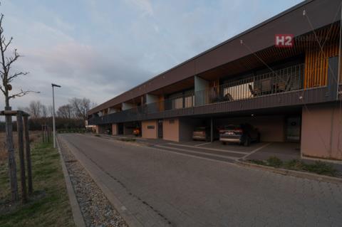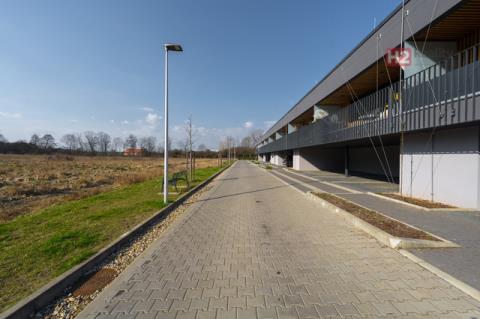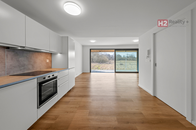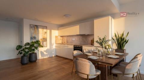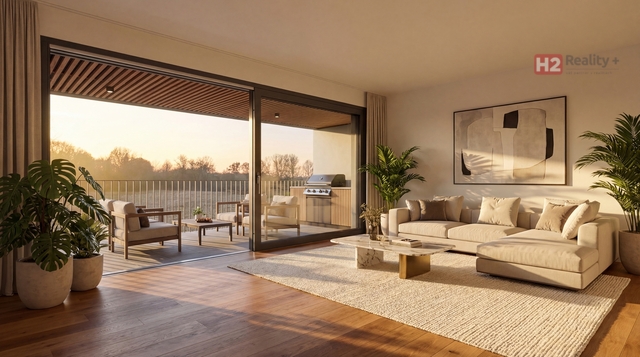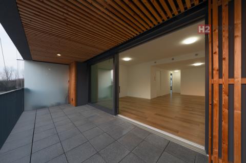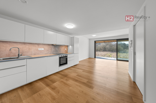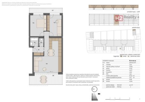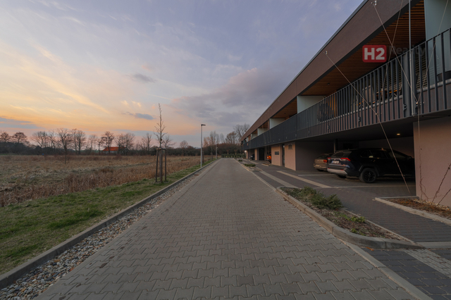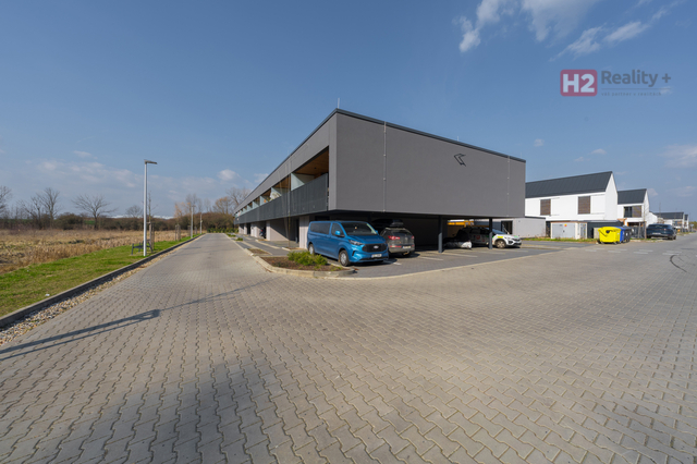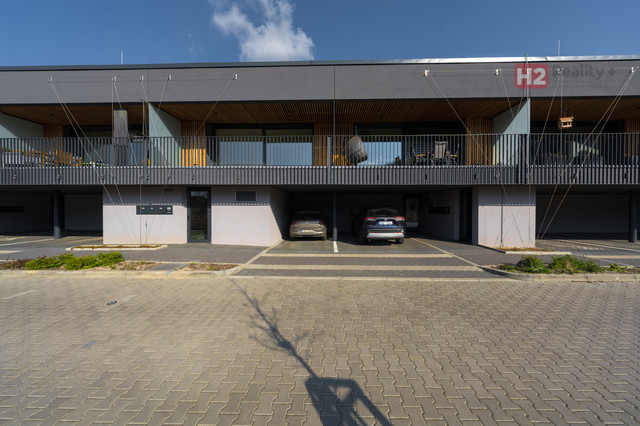 obývací pokoj s prostorem pro obývací část a prostorově oddělenou kuchyň se sezením, dvě ložnice s terasou. Součástí bytu je prostorná sklepní 5,2m2 kóje a jedno kryté parkovací stání (širší 3,4m) v části jen dvou parkovacích stání, přímo vedle vchodu k bytu.