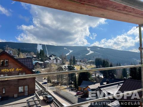 Nabízíme k prodeji jednotku o dispozici 3+kk o celkové užitné ploše 76 m², s balkonem o velikosti 7 m², sklepní kójí (2,4 m²) a vlastním garážovým stáním, umístěnou v exkluzivním rezidenčním projektu Základna Špindl ve Špindlerově Mlýně. Z této jednotky a balkonu je úžasný výhled na sjezdovky ve Svatém Petru. Projekt Základna Špindl je výjimečný rezidenční koncept, který v současné době vzniká v samotném srdci jednoho z nejvyhledávanějších horských středisek v České republice. Nabízí moderní horské bydlení s důrazem na komfort, design a bezstarostný provoz. Váš vlastní „Base Camp“ ve Špindlu Základna Špindl představuje ideální spojení osobního horského útočiště a atraktivní investiční příležitosti s dlouhodobým potenciálem růstu hodnoty. Projekt je navržen tak, aby splňoval nároky nejnáročnější klientely – ať už hledáte místo pro rodinnou rekreaci, aktivní odpočinek nebo reprezentativní zázemí v horách. Rezidenti mají k dispozici: soukromé venkovní wellness (sauna, sud s horkou vodou, venkovní ohniště), moderní lyžárnu s uzamykatelnými skříňkami a vysoušeči lyžařské obuvi, výtah propojující bytové jednotky s lyžárnou a garáží, sklepní kóje a soukromé garážové stání, strategickou polohu v centru Špindlerova Mlýna s výbornou dostupností sportovních i kulturních aktivit. Hrubá stavba dokončena Plánované dokončení projektu: 4. čtvrtletí 2026 Základna Špindl je místem, kde se snoubí luxus, příroda, aktivní životní styl a investiční jistota – po celý rok.
