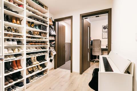 Na chodbě se nachází vestavěná šatní skříň a velká botníková stěna.