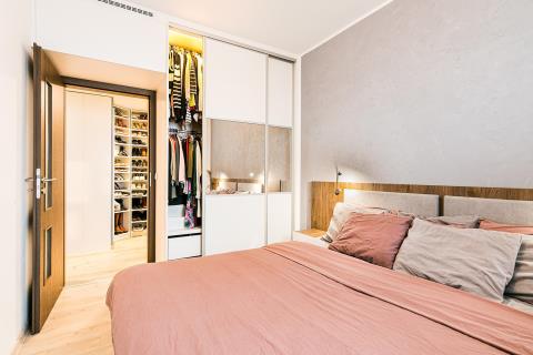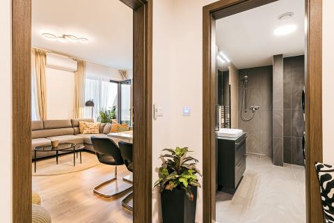Byt disponuje rekuperační jednotkou a dvěma klimatizačními jednotkami – jedna je umístěna v ložnici, druhá v obývací části, což zajišťuje maximální komfort po celý rok. Okna jsou osazena kvalitním trojsklem a vybavena vnějšími elektrickými žaluziemi.