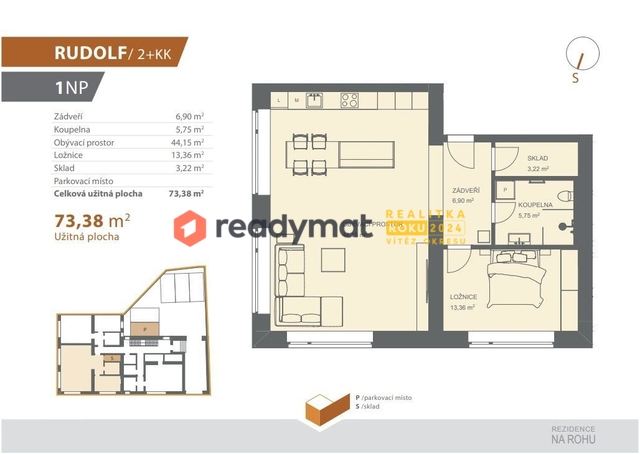 Velmi komfortní byt. Klimatizace v každém pokoji. Podlahové vytápění. Venkovní elektricky ovládané hliníkové žaluzie. Ze vstupní chodby se otevírá velkorysý prostor pokoje spojeného s kuchyní pro každodenní setkávání. Samostatná ložnice nabízí možnost vestavby nábytku, případně do budoucna využití jako dostatečně velký dětský pokoj. Velká koupelna s toaletou. Šatna. Díky orientaci hlavního pokoje na severovýchod a ložnice na severozápad je zajištěn dostatek přirozeného světla a možnost rychlého vyvětrání. Nízké provozní náklady za bydlení. Proto i pronájem dává ekonomiku. Poloha domu je výjimečná. Nachází se jen kousek od centrální ulice města, přesto však v klidné lokalitě. Máte tak veškerou občanskou vybavenost a obchody doslova na dosah ruky. Perfektní volba pro ty, kteří ocení klidné bydlení s rychlým a snadným přístupem ke všem městským službám. Velkou výhodou je možnost parkování. Budete mít své vlastní parkovací místo, což obzvlášť oceníte v městském prostředí, kde parkování může být problém. Vaše vozidlo tak bude vždy bezpečně a pohodlně zaparkované. Navíc můžete jednoduše kombinovat dopravu po městě na kole nebo koloběžce, odskočit si pěšky do kavárny nebo rychle sednout do auta a fičet někam dál. Neztrácet čas je v dnešní době k nezaplacení. Rezidence je připravena k prohlídkám. Pokud hledáte nové bydlení, nebo investici, dejte nám vědět a mrkněte i na naši Realitárnu, kde najdete tento projekt podrobněji. Spolu to bezpečně vymyslíme.