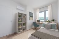Byt je vybaven klimatizací v každé obytné místnosti, která zajistí příjemné prostředí i v horkých letních dnech. O vytápění a ohřev vody se stará centrální tepelné čerpadlo NIBE vzduch–voda, které je napojeno na podlahové teplovodní vytápění. Moderní standard doplňují dubové lepené podlahy, hliníková okna s izolačním trojsklem a venkovní žaluzie na elektrický pohon. Samozřejmostí je centrální vysavač, příprava na fotovoltaickou elektrárnu a využívání dešťové vody, stejně jako garáž s přípojkou pro wallbox a příprava na optický internet. Tento byt tak nabízí nejen útulné bydlení, ale i technickou připravenost pro budoucnost.