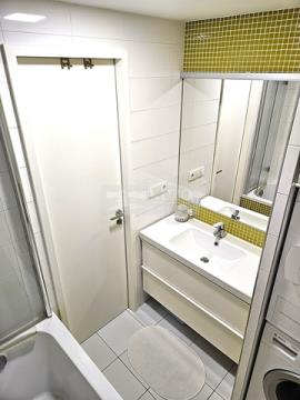 Byt sestává ze vstupní chodby (8,3 m2), prostorného obývacího pokoje s kuchyňským koutem (31,8 m2), 2 neprůchozích pokojů (12,5 m2 a 11,6 m2), koupelny (3,7 m2), WC (1,1 m2), komory (2,4 m2) a lodžie (7 m2). Byt prošel pečlivou, nákladnou, promyšlenou rekonstrukcí, která v sobě spojuje moderní styl, funkčnost i příjemnou domácí atmosféru. Majitelé věnovali pozornost každému detailu. Díky tomu vzniklo i mnoho úložných řešení. V části obývacího pokoje vznikla elegantní vestavěná místnost, kterou lze využít jako pracovnu nebo ložnici. Na základě tohoto chytrého řešení se z bytu stalo pomyslné 4+kk - se dvěma samostatnými dětskými pokoji a útulnou ložnicí/pracovnou pro rodiče. Každý člen rodiny má tak dostatek místa pro své soukromí, a zároveň je tak i dostatek otevřeného prostoru pro společné chvíle. Velkou devízou bytu je také možnost využívat skladový prostor 9,9 m2 s denním světlem a otevíracím oknem v posledním patře domu, který mají majitelé pronajatý od SVJ na dobu neurčitou.