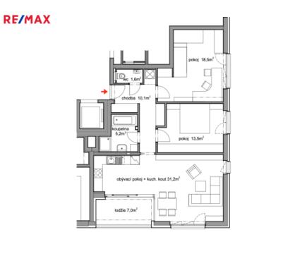K prodeji, Byt 3+1, 74 m2 Brno, Haškova