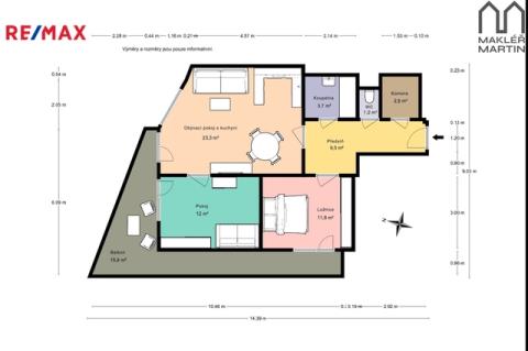 Nabízím k prodeji byt v osobním vlastnictví, nacházející se v Praze 5 – Zličín, ulice Sazovická. Celková výměra bytu činí 80,1 m², z toho balkon má velikost 15,8 m² a užitná plocha bytu je 64,3 m² dle prohlášení vlastníka. Byt se nachází v moderním bytovém domě 3 NP s výtahem a podzemním parkováním. V domě z roku 2009 je celkem 129 bytových jednotek Dispozice bytu je prakticky řešena a nabízí pohodlné bydlení. Podlahy v obytných místnostech jsou plovoucí, v koupelně je položena dlažba. Okna jsou plastová, stejně jako francouzská okna, která se nachází v obývacím pokoji i ložnici. Díky tomu je vstup na prostorný balkon možný z obou místností, což výrazně zvyšuje komfort bydlení a propojení interiéru s venkovním prostorem. Vytápění bytu je řešeno ústředním dálkovým topením, ohřev teplé vody je zajištěn centrálně dálkově v obývacím pokoji je klimatizace pro maximální pohodlí. Tyto systémy přinášejí stabilní provoz a jednoduchou správu bez nutnosti vlastní technologie v bytě. Součástí bytu je také komora, která plně nahrazuje sklepní kóji a poskytuje praktický úložný prostor přímo v bytě. Velkou výhodou je parkovací stání v přízemí domu, do kterého je zajištěn pohodlný vjezd. Lokalita Praha – Zličín patří mezi velmi dobře dostupné a vyhledávané části města. V blízkosti se nachází kompletní občanská vybavenost, obchodní centrum Metropole Zličín, školy, školky, lékaři i služby. Výborná je dopravní dostupnost – metro B Zličín, autobusové spoje i rychlé napojení na Pražský okruh a dálnici D5. Poplatky: FO: 1 300Kč, Voda: T 1 585, S 893 Kč, Teplo: 765 Kč, El 1 320 Kč Byt je vhodný jak pro vlastní bydlení, tak i jako investiční příležitost díky své poloze, dispozici a parkovacímu stání. Těším se na viděnou na prohlídce.