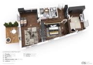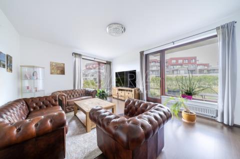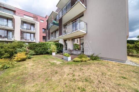 Byt, kolaudovaný v roce 2014, má dispozici 3+kk a je opravdu prostorný – předsíň má 10 m2, ložnice 17,4 a 15,4 m2, obývák s budoucím kuchyňským koutem 31,2 m2, koupelna 4,1 m2 a WC s pračkou 2,9 m2. Dále k bytu patří velký sklep 5,5 m2 a výjimečně i předzahrádka 90 m2, jejíž součástí je terasa o ploše cca 12 m2. Obývací pokoj a předzahrádka jsou orientované na jihozápad, pokoje na severovýchod a jihovýchod. V areálu za závorou budete mít i vlastní parkovací stání.