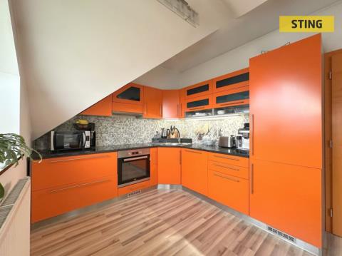 Kuchyňská linka je kompletně vybavena vestavnými spotřebiči (elektrická trouba, sklokeramická deska, digestoř, myčka i lednice) a byt je vytápěn dálkově, což zajišťuje pohodlí bez starostí.