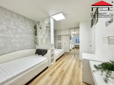 V zastoupení majitele Vám nabízíme nadstandardní byt 3+kk v docházkové vzdálenosti do brněnské pěší zóny. Byt prošel v roce 2021 citlivou kompletní rekonstrukcí s důrazem na maximální komfort a praktičnost. Je zařízen kvalitním interiérem na míru, který je součástí prodeje. Disponuje podlahovou plochou 87 m² (užitná plocha činí 81 m²) a náleží k němu balkón (cca 1 m²) a zděná sklepní kóje (cca 4 m²) s výlučným užíváním pouze pro tuto bytovou jednotku. Byt se skládá z následujících dispozic: ✓ prostorná předsíň ✓ obývací pokoj s kuchyňským koutem ✓ ložnice s balkónem ✓ pokoj ✓ pracovna ✓ koupelna ✓ samostatné WC Dům je průběžně rekonstruovaný a udržovaný, nicméně průkaz energetické náročnosti budovy je zatím v procesu vyhotovení, a proto jsme do doby vyhotovení ze zákona povinni uvést třídu "G". Lokalita nabízí plnou občanskou vybavenost a zastávku MHD u nemovitosti. Rádi Vám byt ukážeme na osobní prohlídce, neváhejte navrhnout preferovaný termín.