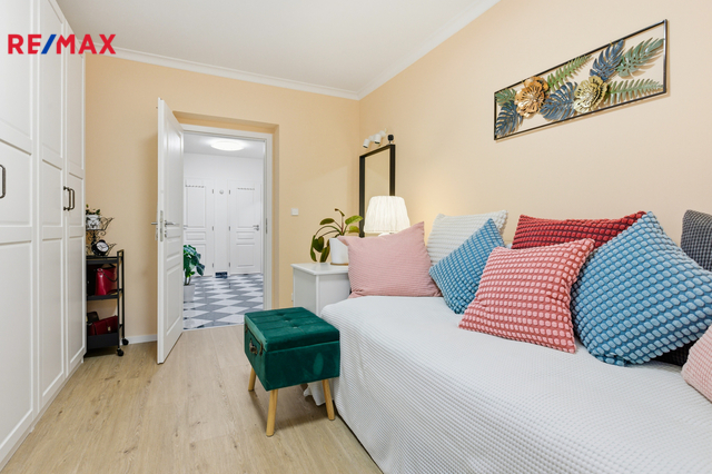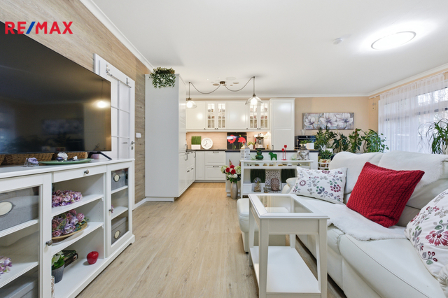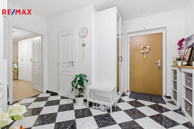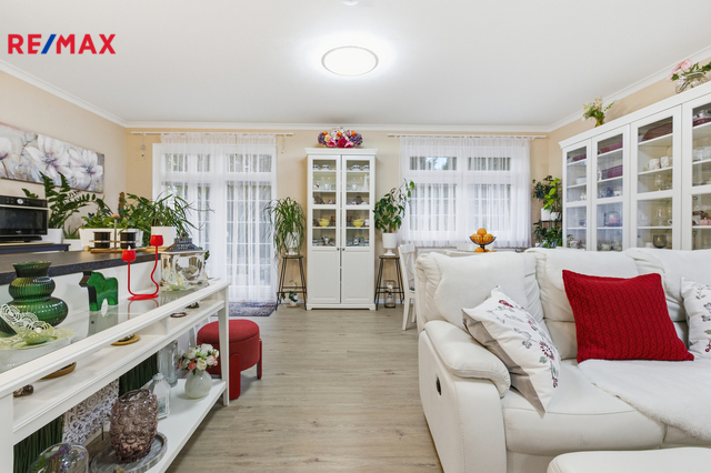 Velkým benefitem této nabídky je vlastní zahrádka v osobním vlastnictví o celkové výměře 54 m², která poskytuje ideální prostor pro posezení, relaxaci nebo menší zahradničení a zároveň zajišťuje příjemné propojení interiéru s exteriérem. Byt působí velmi udržovaným a harmonickým dojmem, podlahy jsou řešeny novým kvalitním vinylovým povrchem a kuchyňská linka je vybavena indukční varnou deskou, troubou, lednicí, mrazákem, myčkou a vestavěnou digestoří. Komfort bydlení dále zvyšují elektrické předokenní rolety a bezpečnost celého objektu zajišťuje kamerový systém instalovaný na domě a garážových stáních.