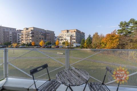 Byt sestává ze vstupní chodby (15,20m2), obývacího pokoje s kuchyňským koutem (28,70m2) a vstupem na balkón (5m2), ze kterého je krásný výhled do přilehlého parku. Kuchyň je vybavena moderními spotřebiči, včetně sklokeramické varné desky, elektrické trouby, mikrovlnné trouby, myčky, kombinované lednice, kávovaru a digestoře. Dále je zde ložnice (12,20m2) s vlastní koupelnou se sprchovým koutem a WC (3,40m2), dětský pokoj/pracovna (10,90m2) druhá velká koupelna (6,20m2) a samostatné WC (2,20m2).