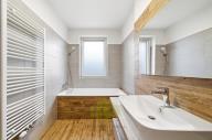 Hledáte nové bydlení bez kompromisů a ALE? Pak věřím, že tato nabídka si Vás získá! Nabízíme možnost koupě slunného rohového bytu 3+kk o ploše 75,6 m2 + lodžie 10,67 m2 v novostavbě na ulici Janského, městská část Povel - Olomouc. Hlavními plusy této cihlové novostavby zkolaudované v roce 2022 jsou bezesporu použité technologie, z nichž za zmínku stojí kvalitní okenní prvky od fy Sulko, mezibytové příčky tloušťky 30cm z cihelných bloků Porotherm Akusym, zateplení obvodového pláště budovy tvrzenou minerální vatou 12cm, dům dále nabízí bezbariérový vstup a moderní výtah. Také díky okolní občanské vybavenosti, rychlé dostupnosti MHD, nájezdu na dálnici, se jedná o jednu z nejžádanějších klidných lokalit k bydlení. Samotný byt, orientovaný na nejslunnější Jihozápad, se nachází v šestém z celkových sedmi nadzemních podlažích. Z vybavení stojí za zmínku kuchyňská linka vyrobená na míru se značkovými spotřebiči, sladění prémiových podlah v dřevodekoru s dýhovanými interiérovými dveřmi, nebo také klimatizační jednotka v obývacím pokoji, zajišťující tepelný komfort jak v létě, tak v chladnějších obdobích mimo topnou sezónu. Praktičnost tohoto nového domova dokresluje samostatná komora o ploše 3,5 m2 na společné chodbě domu pro uložení vašeho sportovního náčiní a sezónních věcí a protože víme, že nikoho nebaví zdlouhavé večerní hledání parkování a kroužení kolem domu, je možnost dokoupení vnitřního parkovacího stání za cenu 500.000,- Kč, díky kterému už nikdy nezažijete škrabání námrazy z oken vašeho vozu. Dům spadá do energetické třídy B, náklady na bydlení tak budou minimální při maximálním tepelném komfortu, a to 2.916,- Kč vč. fondu oprav, dále internet a elektřina. Pro náročné uživatele internetu je tu přichystané připojení optickým kabelem od společnosti Nordic Telecom (O2). Díky naší silné pozici na trhu Vám pomůžeme také bezplatně zajistit nejvýhodnější hypoteční úvěr na dofinancování této koupě. Doporučujeme shlédnout virtuální prohlídku nemovitosti a poté Vás rádi uvítáme při osobní návštěvě, z které už nebudete chtít odejít...