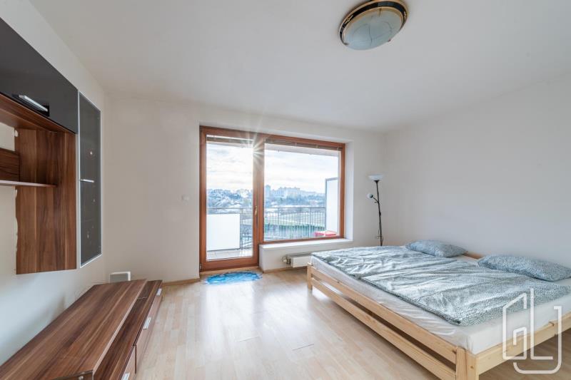 Byt působí světlým a vzdušným dojmem díky velkým oknům a orientaci do klidného vnitrobloku.