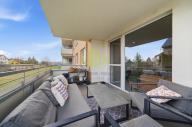 Lodžie o výměře 10,61 m² je plně zastřešená a díky své velikosti poskytuje komfortní venkovní posezení s výhledem do okolní zástavby a směrem k rybníku Hamrys.