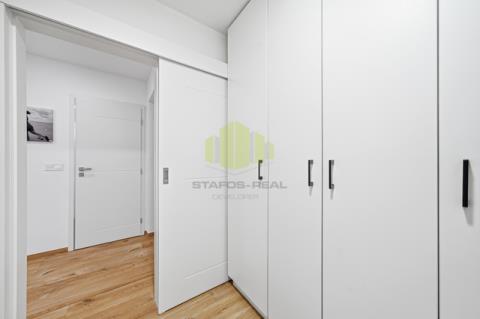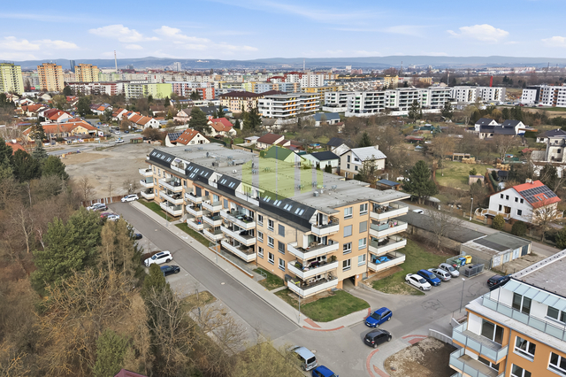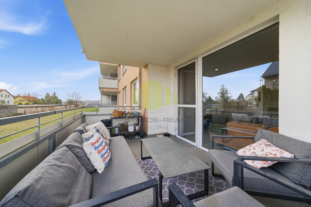 Dispozičně je byt velmi prakticky řešen a nabízí prostorný obývací pokoj s kuchyňským koutem a vstupem na lodžii, samostatnou ložnici, dětský pokoj, koupelnu se sprchovým koutem a dvojitým umyvadlem, samostatné WC a vstupní chodbu. Velkým benefitem je plnohodnotná walk-in šatna v ložnici a samostatná technická místnost sloužící jako prádelna s dostatkem úložného prostoru. Komfort bydlení zvyšuje také privátní mezichodba o výměře 5,5 m², sdílená pouze se sousedním bytem.