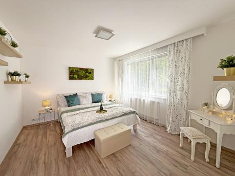 Místo, které si vás získá hned při prvním vstupu. Tento prostorný byt 3+kk o celkové ploše 93,9 m² se nachází v 1. patře bytového domu v moderní a klidné lokalitě obklopené zelení. Promyšlená dispozice a nadstandardní zázemí potěší každého, kdo hledá pohodlí i soukromí. Dominantou bytu je velkorysý obývací pokoj s kuchyňským koutem, komorou a vstupem na zasklenou lodžii s výhledem do zeleně. V obývací části navíc oceníte předokenní rolety, které zvyšují komfort i soukromí. Dále zde najdete ložnici, dětský pokoj a koupelnu s vanou, sprchovým koutem a toaletou. Vstup do bytu vede přes prostornou předsíň, kde je k dispozici druhé samostatné WC. A pokud řešíte úložné prostory, potěší vás 2 prostorné šatny. Velkým bonusem je kryté parkovací stání v suterénu domu a k bytu náleží také sklep. Klid, zeleň, prostor – a zároveň skvělé spojení po D3 i vlakem. Do historického centra Tábora dojdete pohodlně pěšky zhruba za 10 minut. Zaujalo vás to? Ozvěte se mi a domluvte si prohlídku – rád vám byt osobně ukážu.
