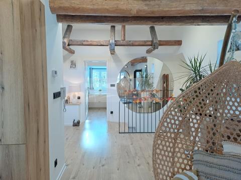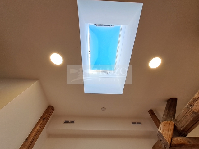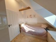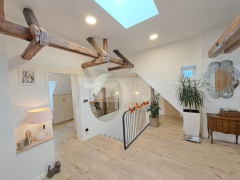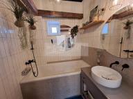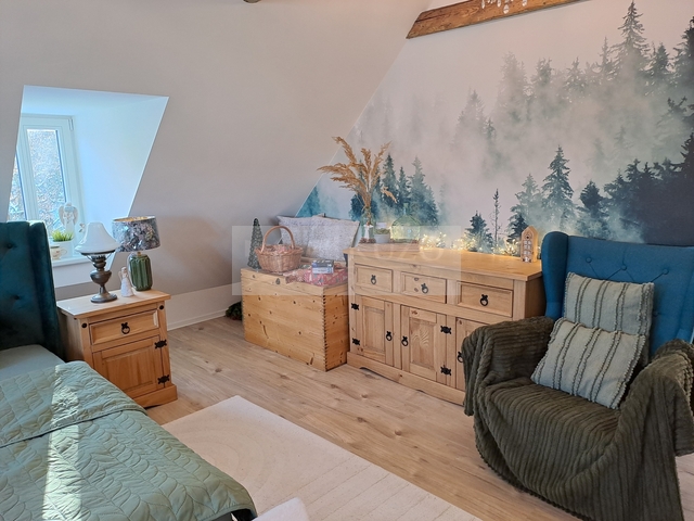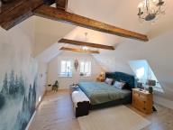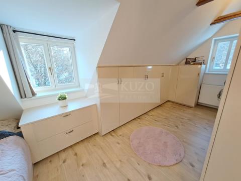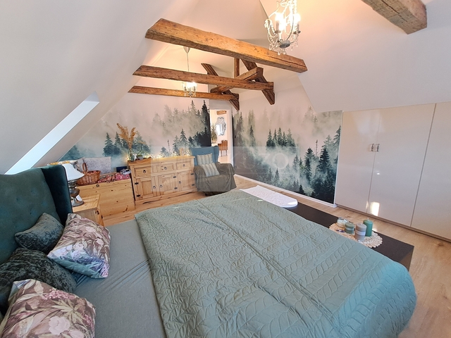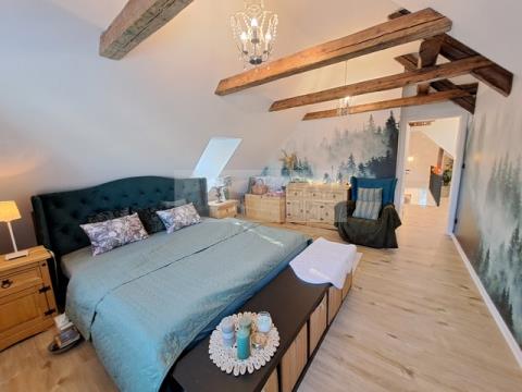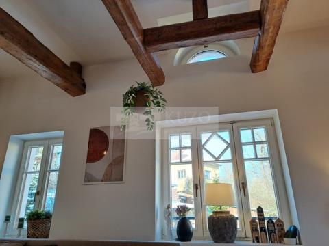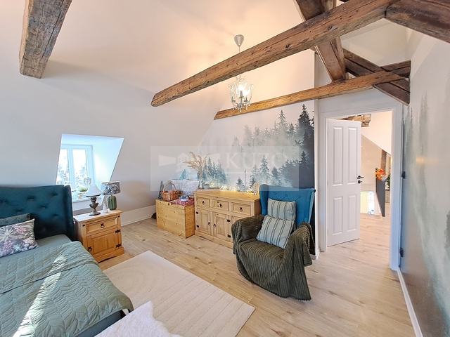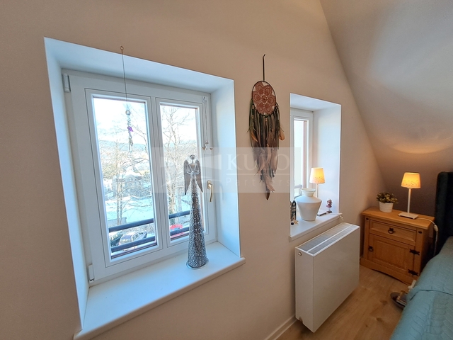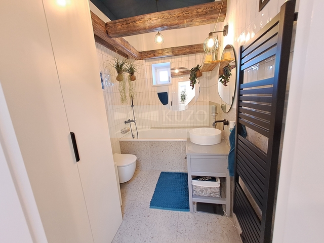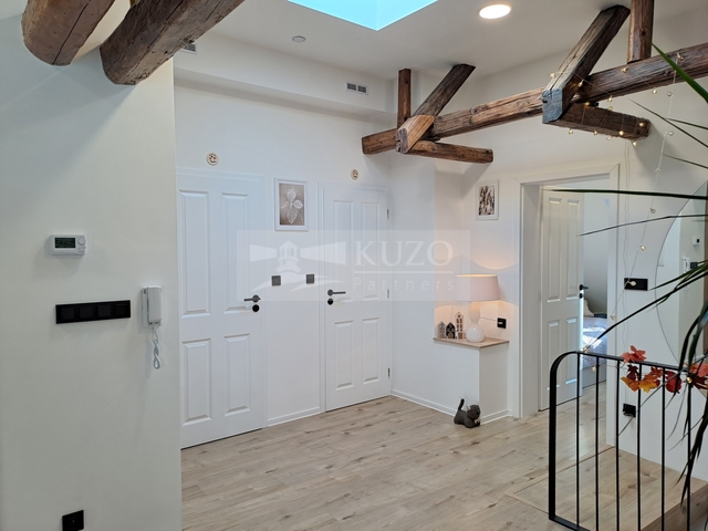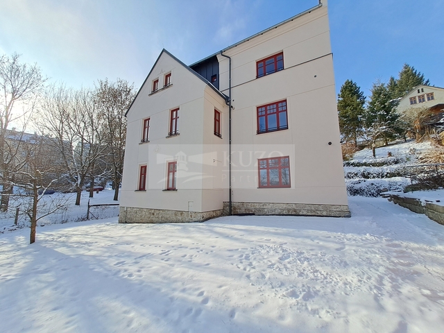 Představte si klid parku a okolních hor uprostřed historické části města Jablonce nad Nisou, svítání na horizontu pozorované z okna ložnice a západ slunce z obývacího pokoje u plápolajícího ohně. Ocitli jste se ve skoro pohádkovém 3+kk bytě, precizně zrekonstruované prvorepublikové vily s géniem loci starých časů s 1/3 vlastní zahrady s ovocnými stromy, uprostřed parku v tichu stromů a výhledy na horizont. V tomto unikátním bytě ve 3. nadzemním podlaží si budete připadat jako na Vašem malém soukromém zámečku, v království zimy a nedalekých hor a přitom s veškerým komfortem restaurací, obchodů a služeb okolního města. Byt, stejně tak jako celá vila o 6-ti bytových jednotkách, je citlivě zrekonstruován s důrazem na kvalitu a maximální pohodlí majitelů. Vestavěná kuchyně je od interiérové špičky na trhu, spol. Hanák, s pracovní deskou z drceného kamene, denním barem, výsuvnou digestoří, nadrozměrnou lednicí a dalšími prvky dotvářejí pocit luxusu a péče. Koupelna s vanou umožňuje relaxaci po náročném pracovním nebo sportovním dni, stejně jako posezení u litinového designového krbu v obývacím pokoji. Sedací okno zase vybízí k zasněným toulkám pohledy po krajině z tepla a pohodlí domova. Klidný nádech ložnice dovoluje majitelům plně se uvolnit a načerpat síly na další dny a výzvy. Pracovna/dětský pokoj je vybaven na míru zhotovenými vestavěnými skříněmi, také od spol. Hanák. Krásné původní masivní trámy a větší a menší okénka dodávají tomuto unikátnímu bytu zemitý a tradiční charakter. Důmyslné úložné prostory naleznete v komoře pod schody i v malé komůrce u vstupní haly nad schody. Na střeše nad bytem je navíc možno vytvořit rozlehlou terasu s panoramatickými výhledy. Mohutné zdi, nová dřevěná okna, vlastní kvalitní plynový kotel a velký litinový krb společně předurčují nejen velmi ekonomický a efektivní provoz bytu, ale také zajišťují tepelnou pohodu s nádechem klasického, lehce aristokratického stylu. Na pozemku před domem se nachází kůlna na zahradní nábytek a parkovací stání náležející k bytu je přímo před domem. Tento jedinečný byt se může stát Vaším novým domovem nebo rekreační oázou, kde jistě zapomenete na starosti všedních dní. Obdobný byt se v Jablonci nenabízí, tak si nenechte tuto příležitost ujít. Těším se na Vás.