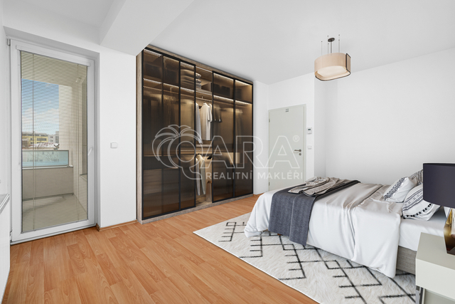 Byt disponuje skvělou dispozicí, díky které je zajištěn dostatek úložných prostor. Pro svá velká okna se do bytu dostává přirozené světlo, což umocňuje příjemnou atmosféru.