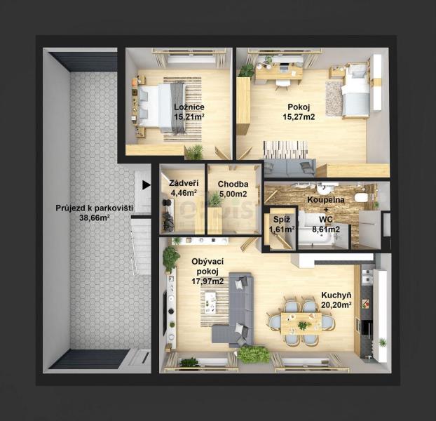Exklusivně nabízíme k prodeji novostavbu bytu 3+kk ve zděném domě se třemi byty, v Novém Strašecí (v nabídce také dva byty 5+kk cca 128 m2). Byt je umístěn v přízemí třípodlažní nově budované zděné stavby (k nastěhování koncem r. 2026) a jeho obytná plocha činí 98,43 m2. V bytě nalezneme zádveří, chodbu, obývací pokoj kuchyň se spíží, koupelnu s vanou, sprchovým koutem a toaletou, pokoj a ložnici. K bytu dále náleží parkovací stání ve dvoře za dvěmi sekčními vraty s elektrickým pohonem. Vytápění bytu a ohřev vody řešeno vlastním plynovým kotlem, v celém bytě teplovodní podlahové vytápění. Byt se nabízí v kvalitních standardních materiálech, možnost výběru obkladů, dlažeb, finálního povrchu podlah a obložkových dveří (fotografie jsou orientační z bytů 5+kk v tomto domě). V případě zájmu možno řešit také nadstandardní výběr materiálů dle požadavků klienta. Pro bližší informace nás neváhejte kontaktovat. Financování možné úvěrem, rádi vyřídíme.