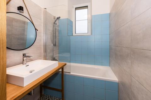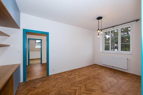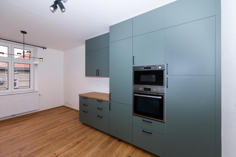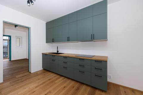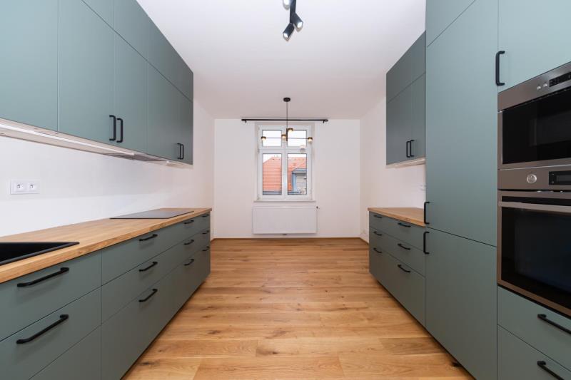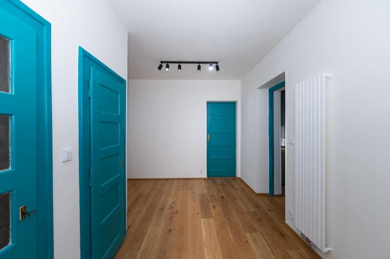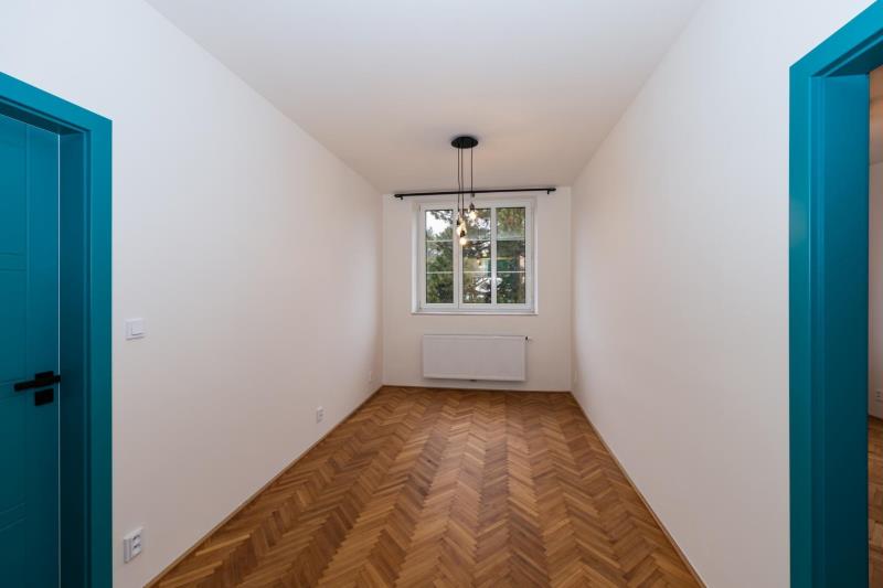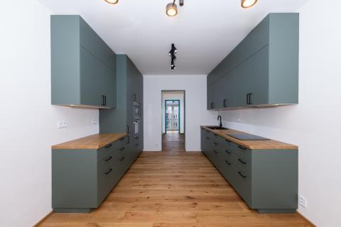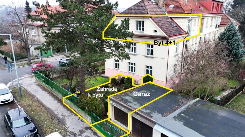 Nabízíme k prodeji světlý, prostorný a výjimečný byt 4+1 o celkové ploše 100 m (včetně zasklené lodžie), umístěný ve 3. nadzemním podlaží udržovaného domu v klidné vilové čtvrti Prahy 5 Smíchov, nad parkem Klamovka. Součástí nabídky je samostatná zděná garáž o velikosti 24 m, vlastní zahrada o výměře 83 m a sklep v suterénu domu 9 m. Byt disponuje čtyřmi průchozími pokoji, prostornou vstupní halou a velkorysou kuchyní. Orientace východ jih západ zajišťuje dostatek denního světla po celý den. Nemovitost je po kompletní a velmi zdařilé rekonstrukci a je připravena k okamžitému nastěhování nový majitel bude prvním uživatelem po rekonstrukci. Kuchyně: Prostorná kuchyně s kuchyňskou linkou na míru a vestavěnými spotřebiči: lednice s mrazákem myčka indukční varná deska digestoř mikrovlnná trouba horkovzdušná trouba Dřevěná pracovní deska, LED podsvícení, horní svítidla a dřevěná podlaha. Do kuchyně bude ještě doplněn obklad mezi horní a spodní část linky ve stejném designu jako pracovní deska. Interiér a detaily: modré interiérové dveře v celém bytě vestavěné skříně v modré barvě kombinované s přírodním dřevem nové radiátory s termohlavicemi nové rozvody elektřiny a odpadů Tyto prvky dodávají bytu osobitý charakter a činí jej ojedinělým na trhu. Hala a lodžie: Z prostorné haly je vstup na zasklenou lodžii o výměře 3,2 m s výhledem do zahrady. Lodžie je vybavena radiátorem a lze ji využít jako pracovní kout nebo relaxační prostor. Budou doplněny také interiérové dveře mezi halou a lodžií. Koupelna a WC: koupelna s vanou se zástěnou vestavěná stěna s pračka + sušička samostatné WC moderní obklady a dlažby Výhody: samostatná zděná garáž 24 m (elektrické ovládání, vstup z ulice) vlastní zahrada 83 m sklep v suterénu domu Na přání je možné řešit vestavěnou skříň pro zakrytí plynového kotle. Lokalita: Vyhledávaná vilová čtvrť Smíchova klid, zeleň a výborná dostupnost: autobusová zastávka Pod Lipkami (linky 149, 191) metro Anděl / Zličín cca 10 minut kompletní občanská vybavenost v okolí Byt je volný ihned / dle dohody a je ideální volbou pro klienty, kteří hledají kvalitní bydlení s charakterem, garáží a vlastní zahradou v jedné z nejžádanějších částí Prahy 5. Energetická náročnost: Stav energetického průkazu aktuálně není dokončen. Energetická náročnost budovy bude doplněna po vydání průkazu.