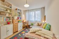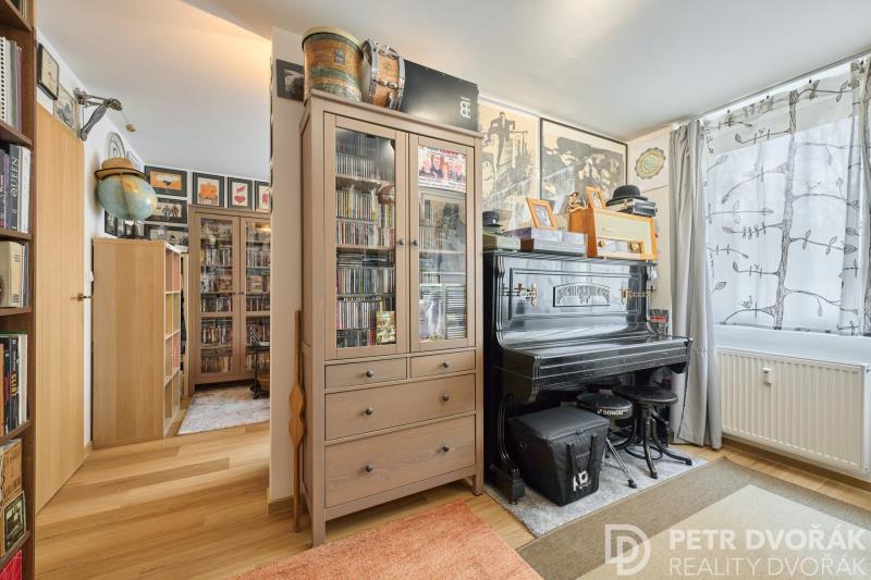 Aktuální dispozice bytu je řešena jako 4+1 / 4+kk, přičemž jeden z pokojů byl rozdělen akustickou stěnou na dvě samostatné místnosti. Díky tomu byt nabízí vysokou míru flexibility pro práci z domova, dětské pokoje nebo oddělené zázemí pro více členů domácnosti. Jednoduchým zásahem je možné dispozici vrátit zpět do původního řešení 5+1.
