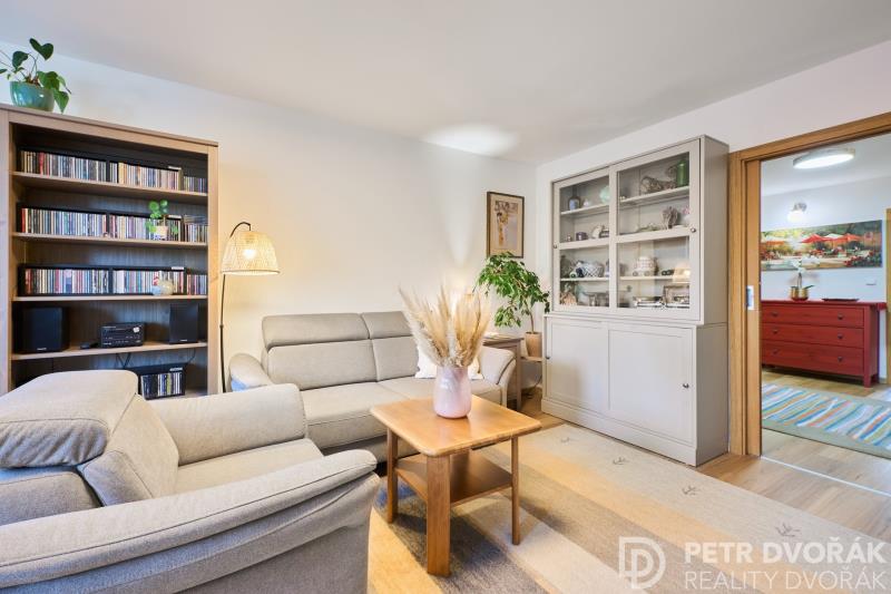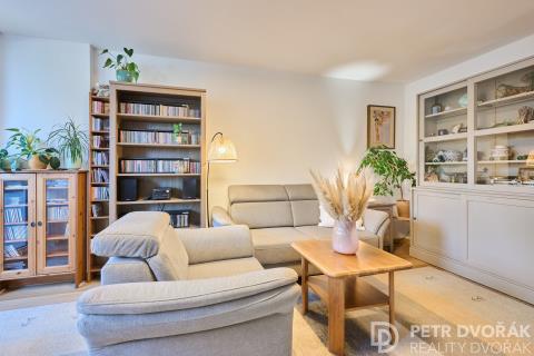 Prostorný byt v osobním vlastnictví o současné dispozici 4+1 s halou a podlahové ploše 109,8 m², situovaný ve druhém nadzemním podlaží nízkopodlažního domu rodinného charakteru v historickém jádru starých Stodůlek. Součástí jsou dva sklepy (2 × 3,4 m²) a lodžie 6,9 m² — celková užitná plocha dosahuje 124,3 m².