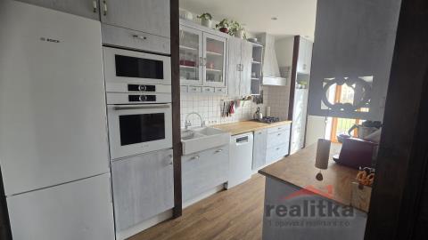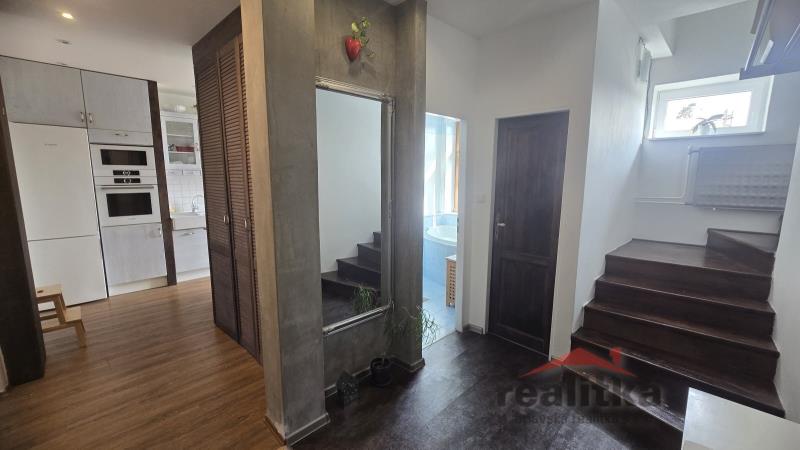 Nabízíme prodej krásného, mezonetového bytu 4+1, 115m2 v Opavě na ul. Pekařská. Byt se nachází v 1. patře cihlového domu bez výtahu. Byt prošel před několika lety rekonstrukcí. Byt je velmi útulný a slunný. V celém bytě jsou nová okna - ve spodní části dřevěná a v mezonetu plastová, nová elektřina, omítky, podlahy. Ve spodním patře se nachází obývací pokoj s pracovnou, kuchyňská část se vstupem na balkón s nádherným výhledem na řeku, v kuchyni je zabudovaná elektrická trouba, mikrovlnka, lednice s mrazákem a myčka značky Bosch. V předsíni jsou vestavěné skříně, kde je umístěna pračka, sušička a elektrický bojler na vodu, v koupelně je rohová vana, dvě umyvadla, okno opět s výhledem na řeku a zvlášť wc. V koupelně je podlahové topení. Točitým schodištěm se dostáváme do 1. patra, kde jsou 3 samostatné ložnice se zabudovaným nábytkem, skříněmi a plynový kotel na vytápění. Zájemci o prohlídku dle domluvy s paní Gratzovou.