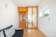 Praktická šatna s vestavnými skříněmi nabízí dostatek úložného prostoru. Koupelna se sprchovým koutem a toaletou, vybavená elektrickým podlahovým vytápěním a otopným žebříkem. Zde je také umístěn plynový kotel, který zajišťuje vytápění a ohřev vody.