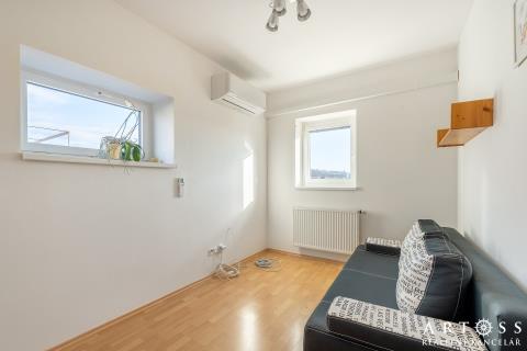 Soukromí, klid a možnost pohybu zajišťuje umístění bytu ve 3. a 4. patře bytového domu bez výtahu, kolaudovaného v roce 2004. Díky orientaci na jihovýchod a severozápad je byt po celý den krásně prosvětlený a působí velmi vzdušně a příjemně.